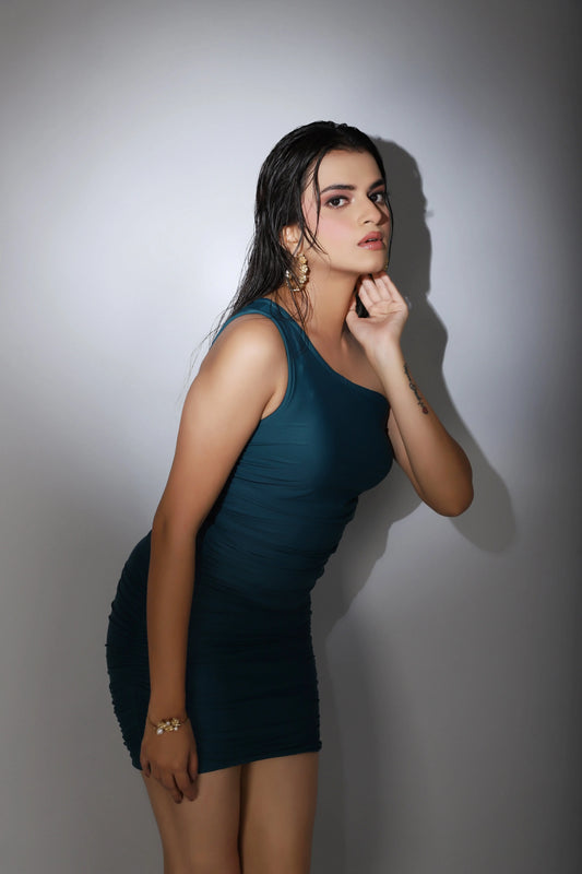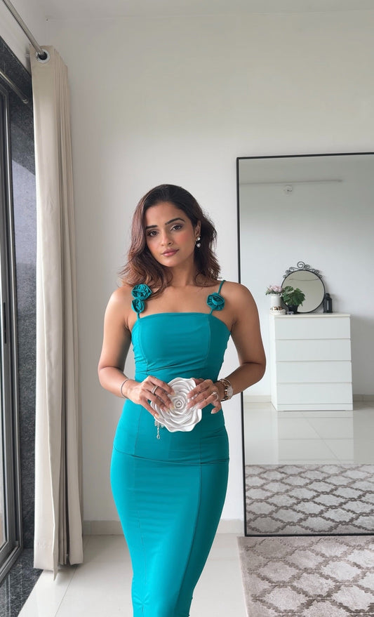 Elina Teal Bodycon Dress with Slit | Women's Sleeveless Slim Fit Evening Dress
