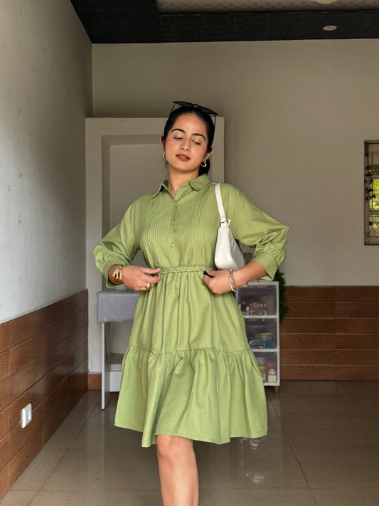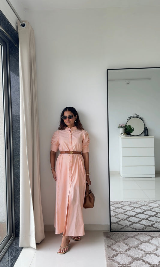Nora Stripes Cotton Midi Dress – With Sleeves