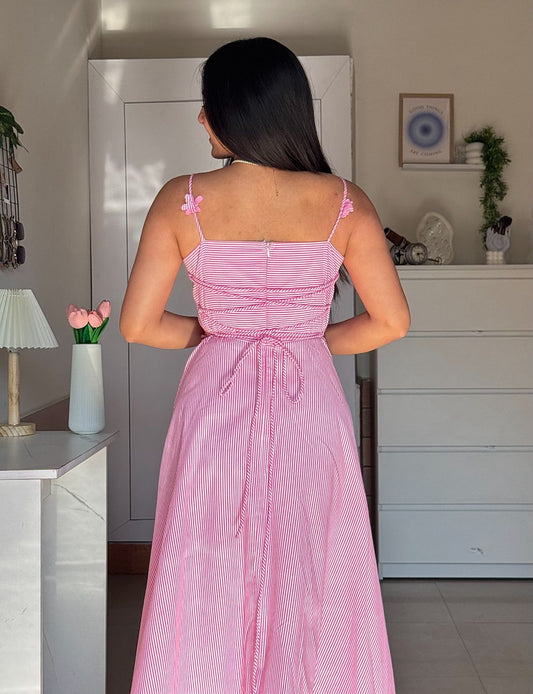 Nora Stripes Cotton Midi Dress – Halter Neck Summer Fit