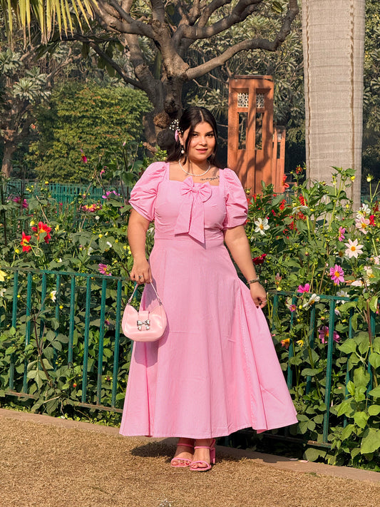 Pink Flower Dress with Bow Clip