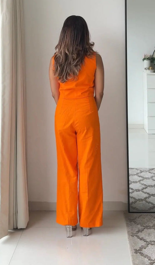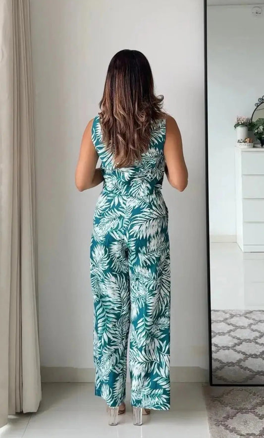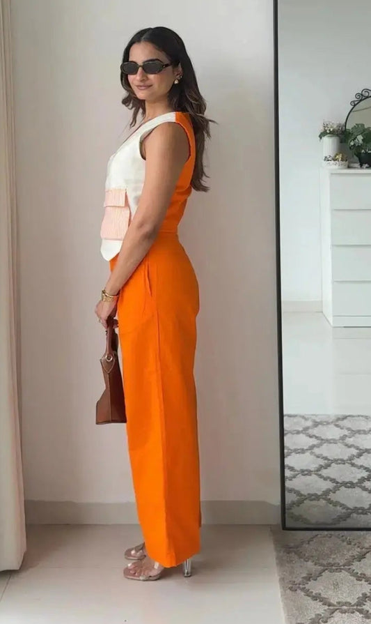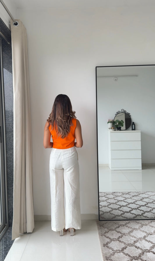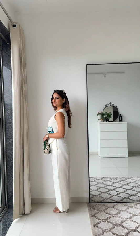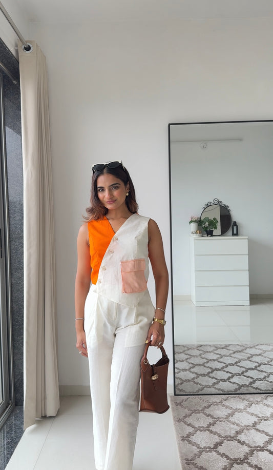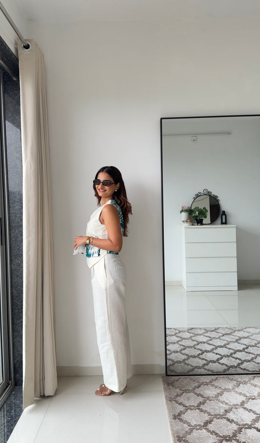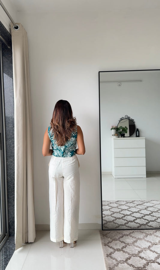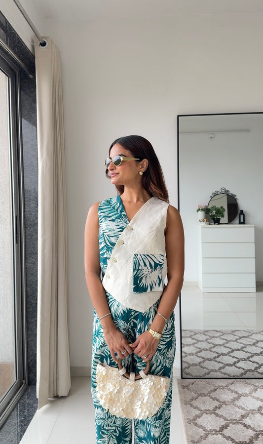 Rachel Floral Linen Pants and Off White Waistcoat Set