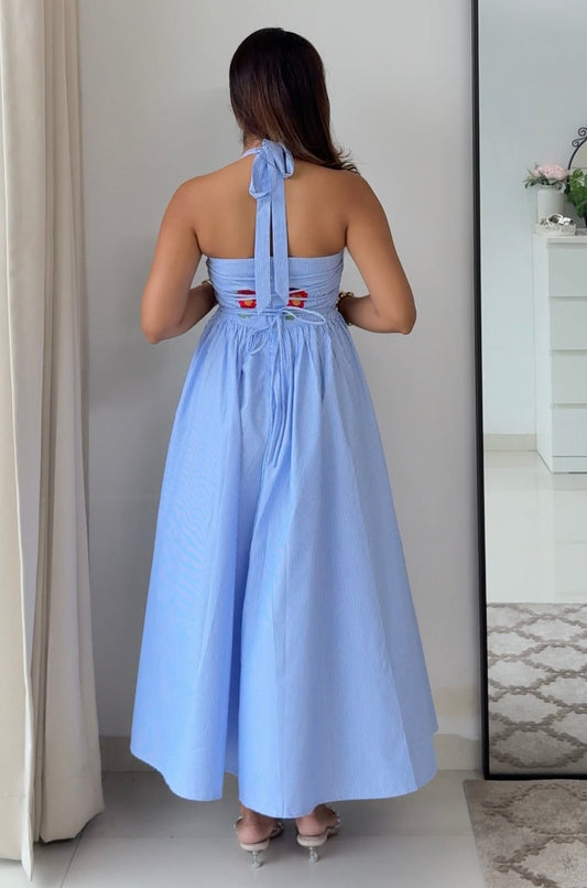 Nora Stripes Cotton Midi Dress – Halter Neck Summer Fit